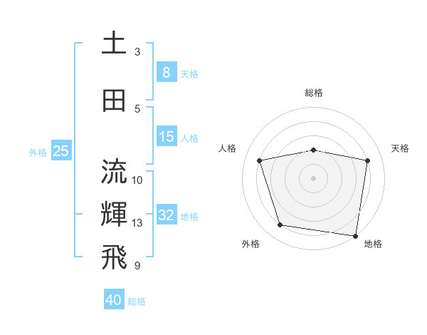 土田 流輝飛さんを姓名の画数から五運を鑑定