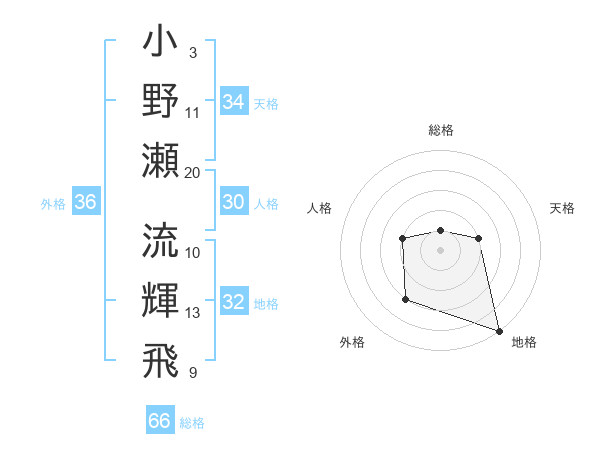 小野瀬 流輝飛さんを姓名の画数から五運を鑑定
