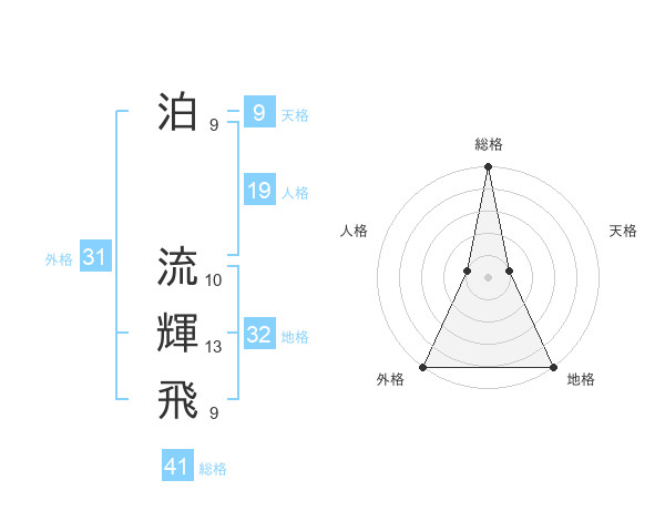 泊 流輝飛さんを姓名の画数から五運を鑑定