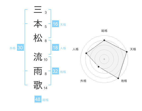 三本松 流雨歌さんを姓名の画数から五運を鑑定