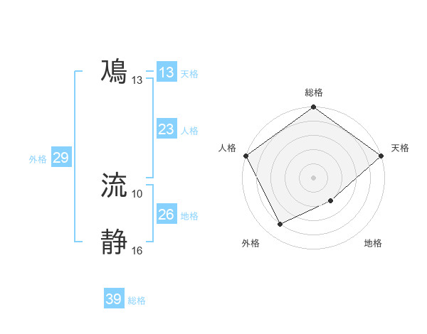 鳰 流静さんの総格は39画の5点!