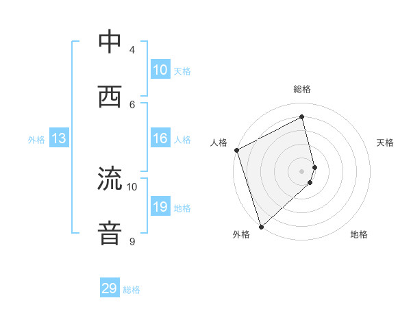 中西 流音さんの総格は29画の4点!