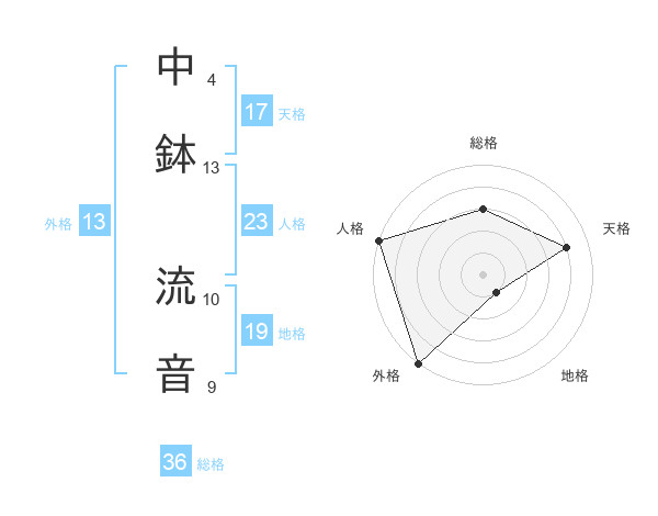 中鉢 流音さんの外格は13画の5点!