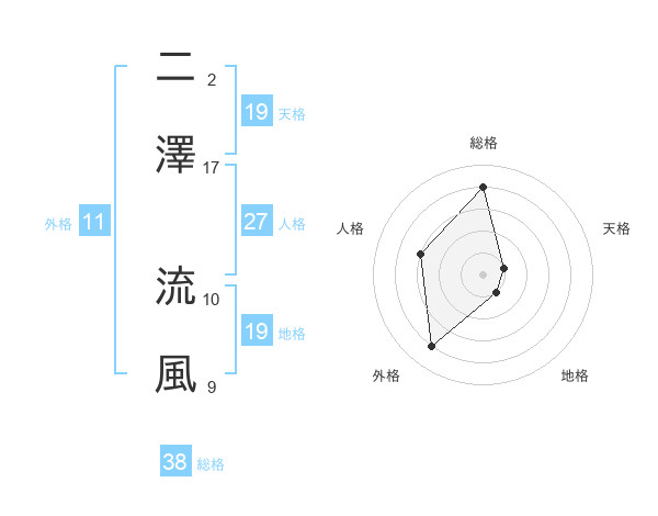 二澤 流風さんの総格は38画の4点!