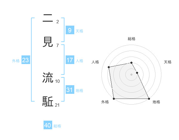 二見 流駈さんの外格は23画の5点!