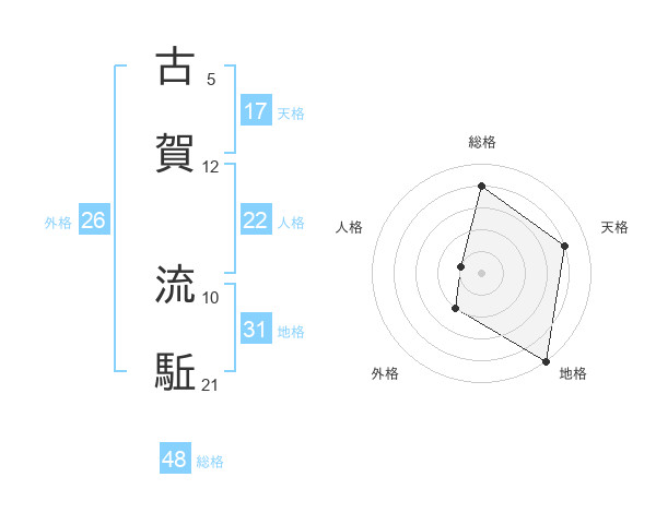 古賀 流駈さんの地格は31画の5点!
