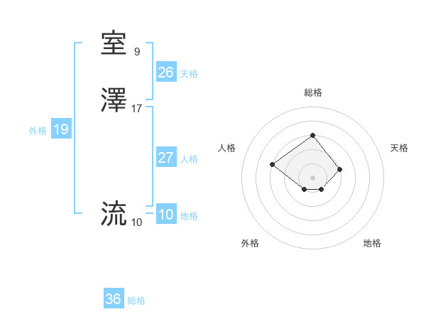 室澤 流さんの総格は36画の3点!