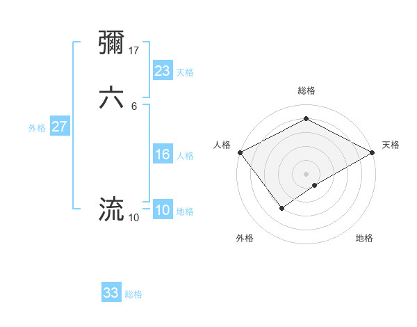 彌六 流さんの総格は33画の4点!