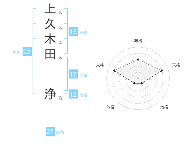 上久木田 浄さんを姓名の画数から五運を鑑定