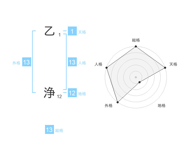 乙 浄さんの外格は13画の5点!