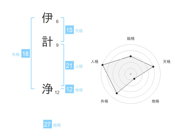 伊計 浄さんの総格は27画の3点!