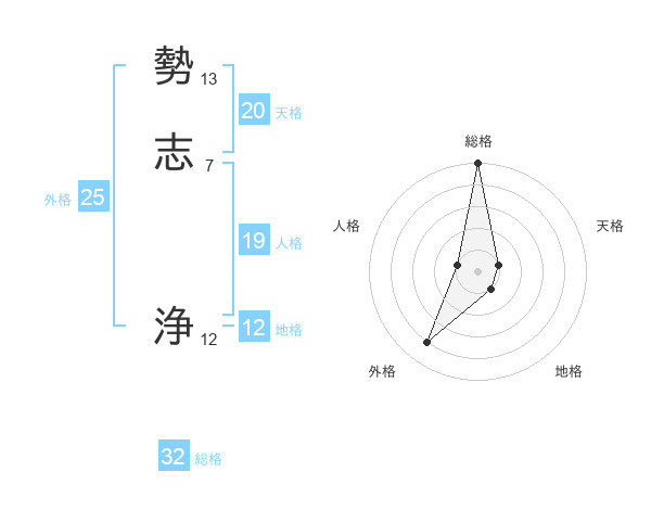 勢志 浄さんの総格は32画の5点!