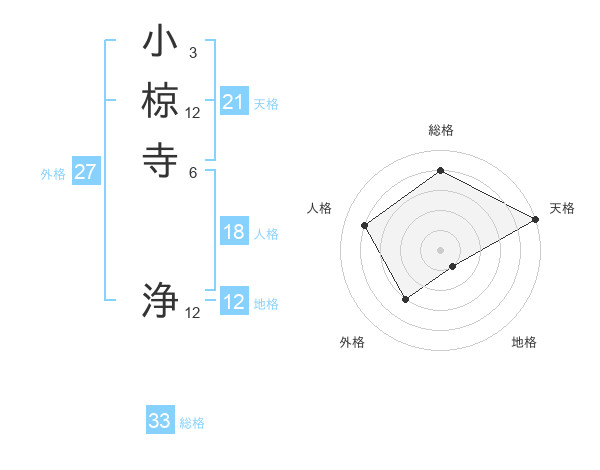小椋寺 浄さんの総格は33画の4点!
