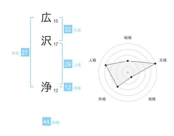 広沢 浄さんの天格は32画の5点!