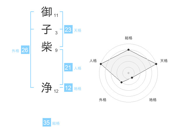 御子柴 浄さんの総格は35画の4点!