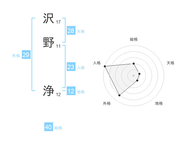 沢野 浄さんの外格は29画の4点!