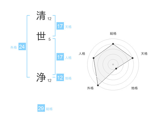 清世 浄さんの総格は29画の4点!