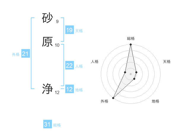 砂原 浄さんの総格は31画の5点!
