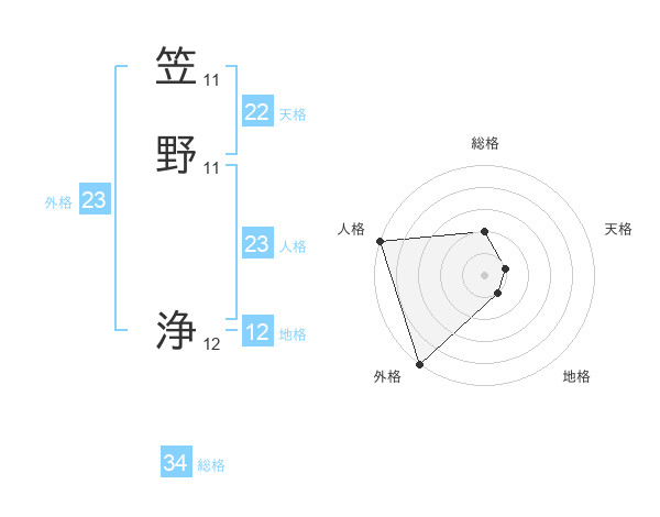 笠野 浄さんの外格は23画の5点!