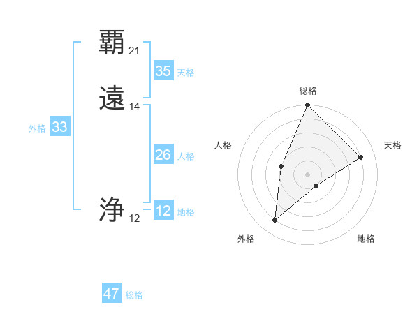覇遠 浄さんを姓名の画数から五運を鑑定