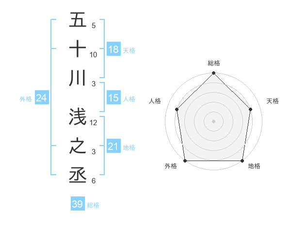 五十川 浅之丞さんを姓名の画数から五運を鑑定