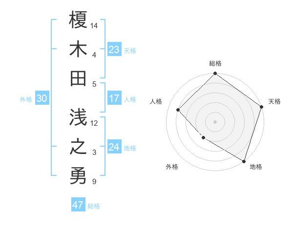 榎木田 浅之勇さんの総格は47画の5点!