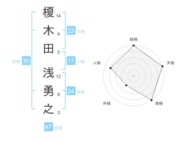 榎木田 浅勇之さんの総格は47画の5点!