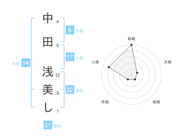 中田 浅美しさんの総格は31画の5点!