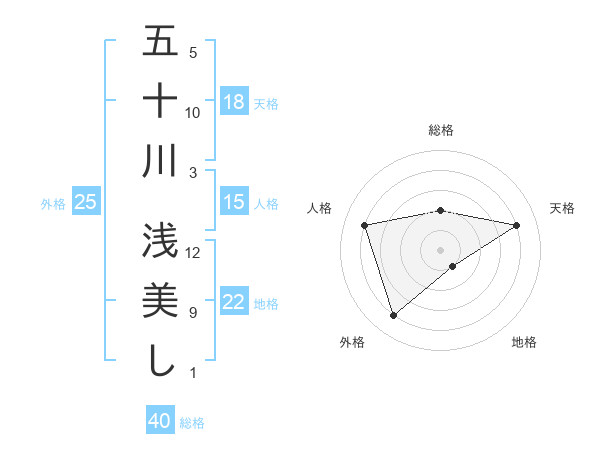 五十川 浅美しさんの総格は40画の2点