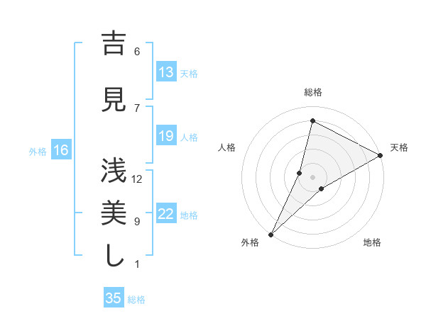 吉見 浅美しさんを姓名の画数から五運を鑑定