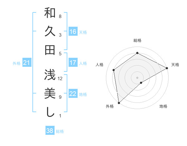 和久田 浅美しさんを姓名の画数から五運を鑑定