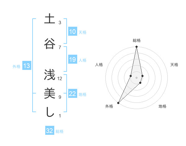 土谷 浅美しさんの外格は13画の5点!