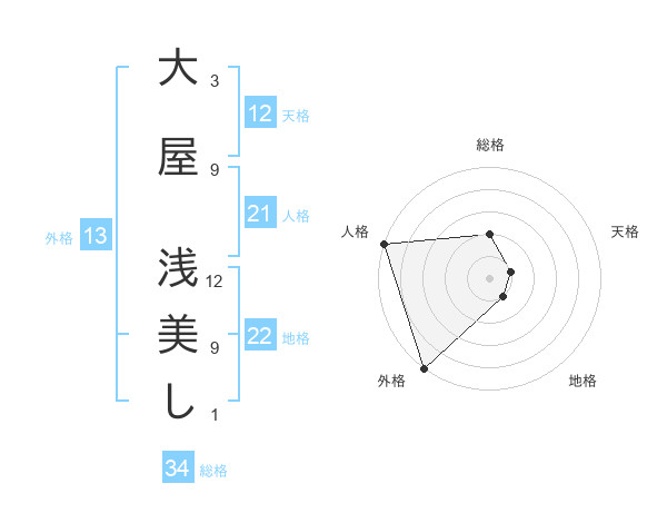 大屋 浅美しさんを姓名の画数から五運を鑑定