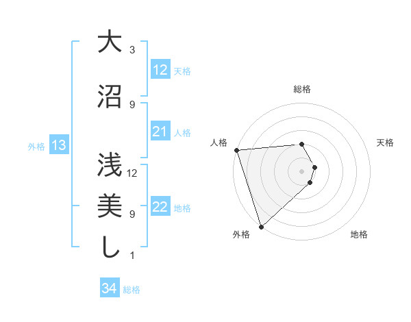 大沼 浅美しさんの外格は13画の5点!