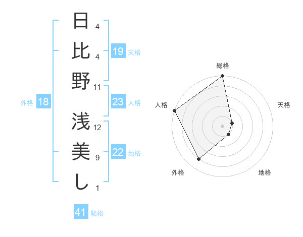 日比野 浅美しさんの総格は41画の5点!