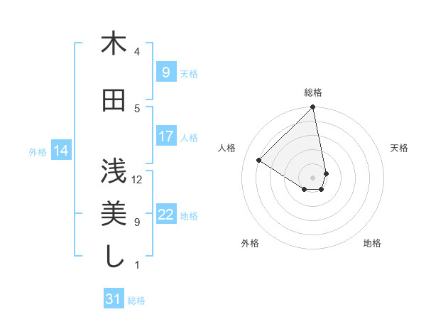 木田 浅美しさんを姓名の画数から五運を鑑定