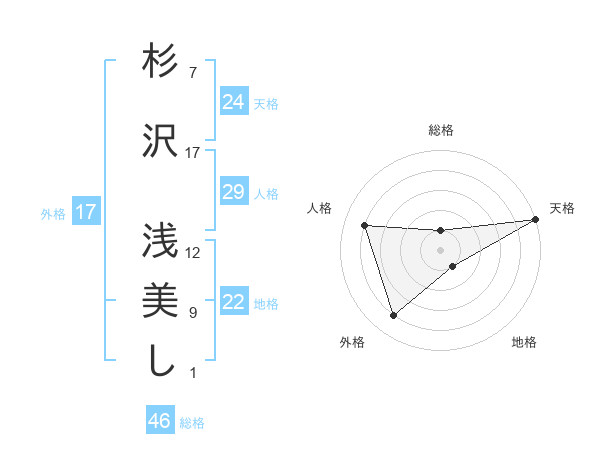杉沢 浅美しさんを姓名の画数から五運を鑑定