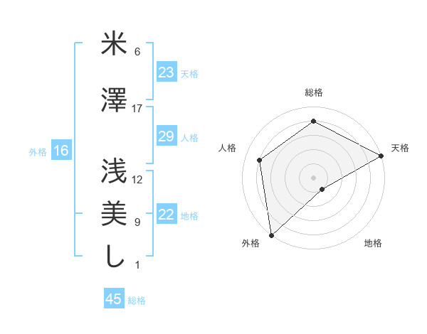 米澤 浅美しさんを姓名の画数から五運を鑑定