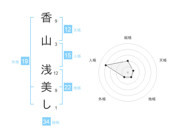 香山 浅美しさんの総格は34画の2点!