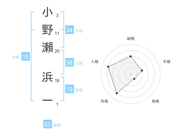 小野瀬 浜一さんを姓名の画数から五運を鑑定