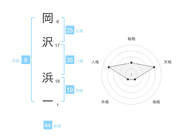 岡沢 浜一さんの総格は44画の2点!