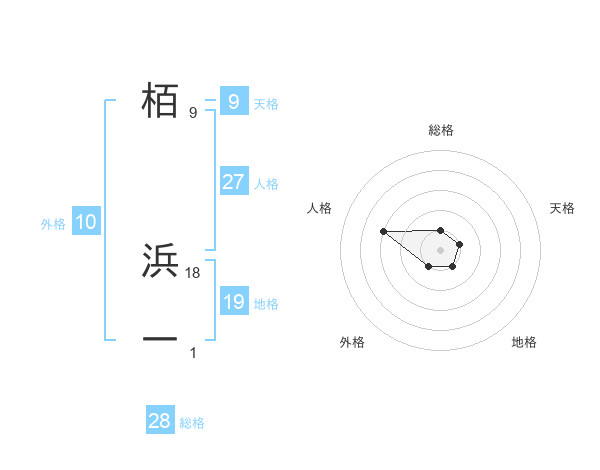 栢 浜一さんの総格は28画の1点!