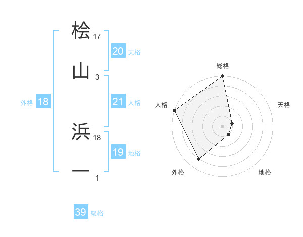 桧山 浜一さんの総格は39画の5点!