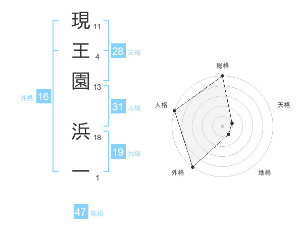 現王園 浜一さんを姓名の画数から五運を鑑定
