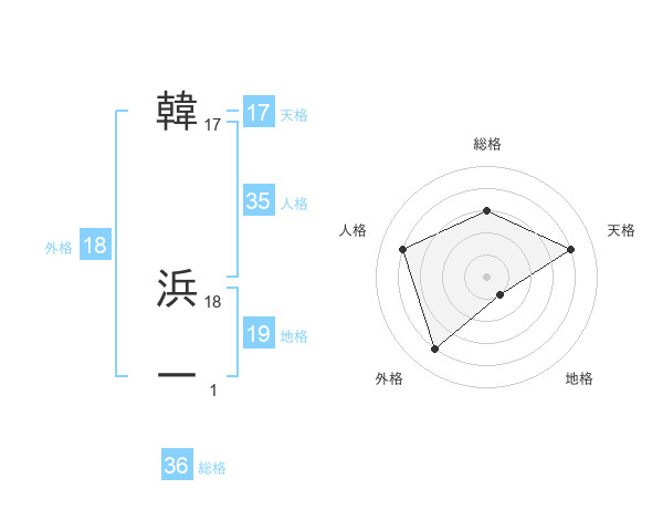 韓 浜一さんの地格は19画の1点!