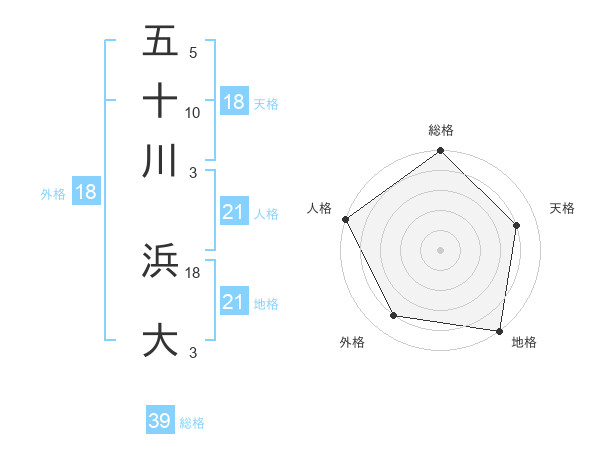 五十川 浜大さんの総格は39画の5点!