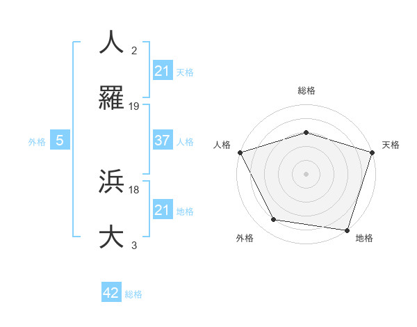 人羅 浜大さんの天格は21画の5点!