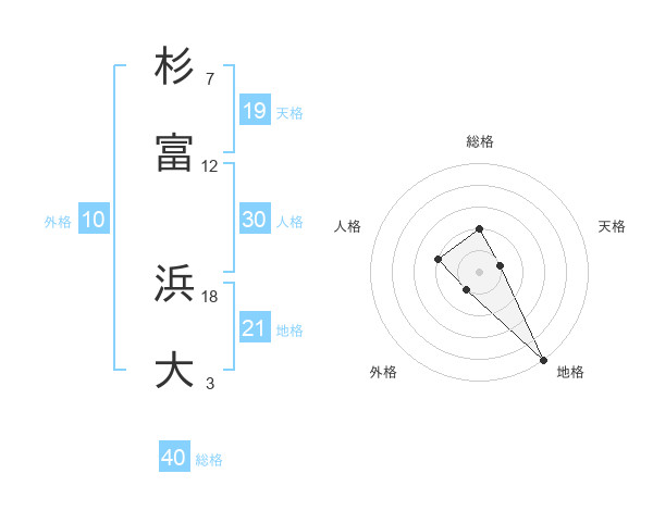 杉富 浜大さんを姓名の画数から五運を鑑定