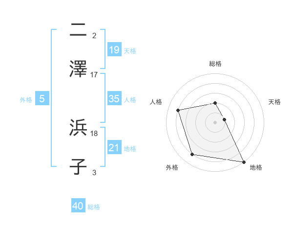 二澤 浜子さんを姓名の画数から五運を鑑定