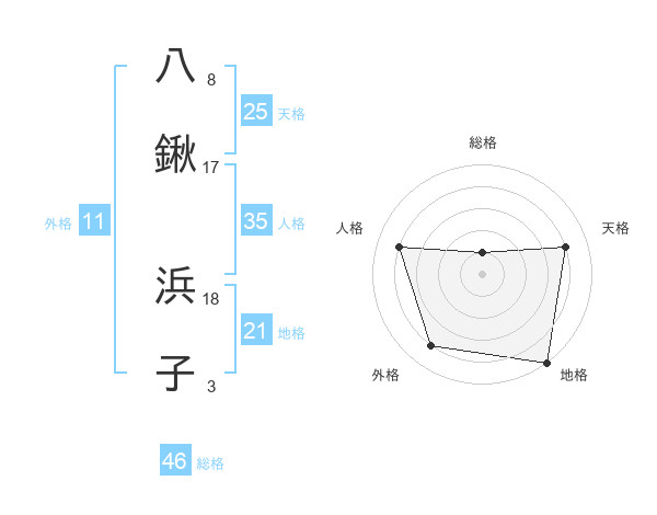 八鍬 浜子さんの地格は21画の5点!